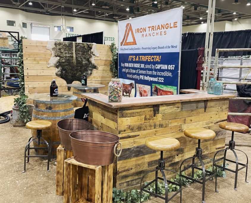 For three years, we’ve designed and provided rentals for Iron Ranch at the National Red Angus Show, the largest event of its kind. Showcasing top-tier Red Angus genetics, our custom western rustic booth adds a touch of elegance to this premier event.