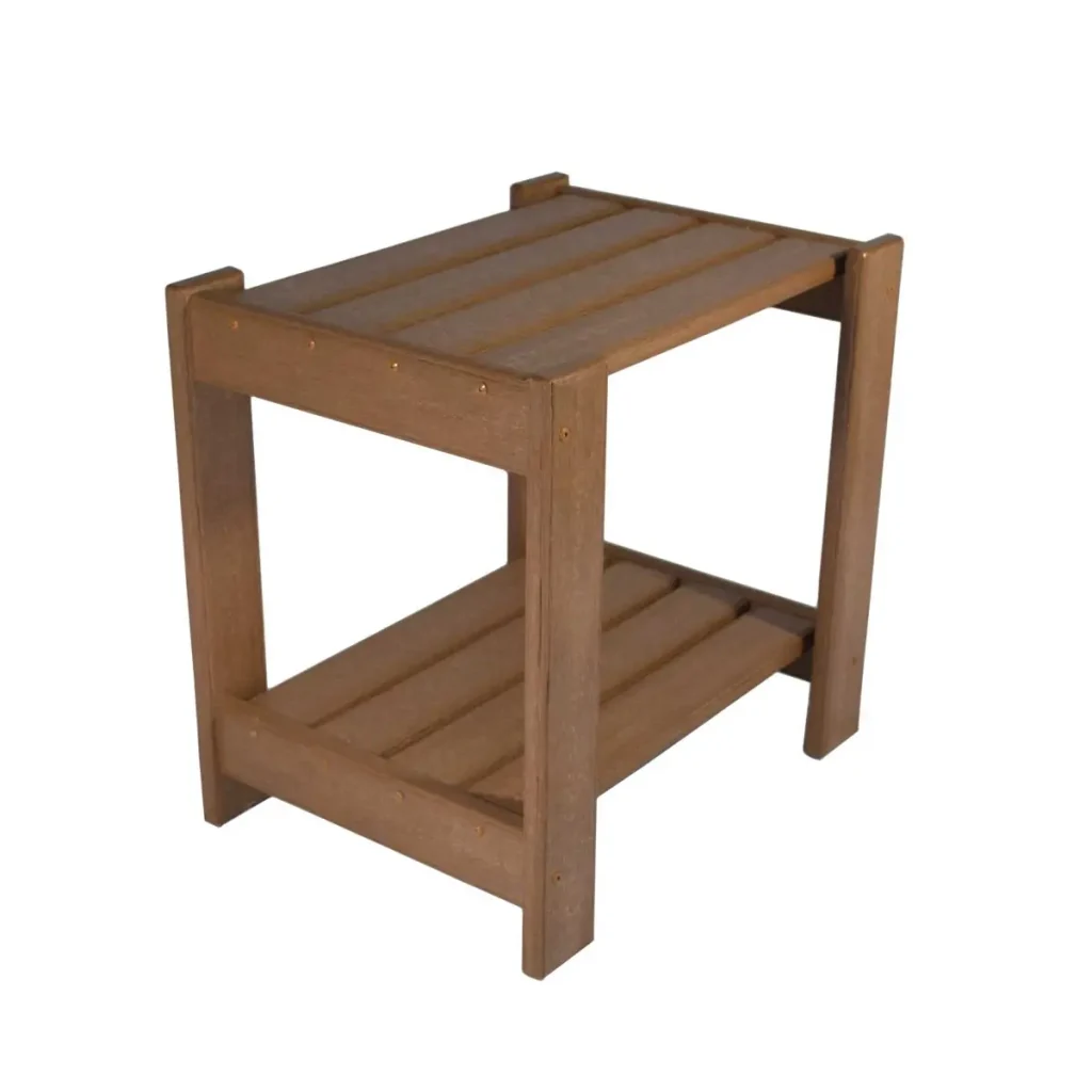 The Adirondack Side Table from Desert Southwest Event Rentals of Lake Tahoe is a rustic and durable faux cedar piece, perfect for outdoor events. Its classic design adds charm to lounges, garden parties, or beachside setups, providing a functional surface for drinks or decor. Elevate your outdoor ambiance with this timeless and versatile addition.