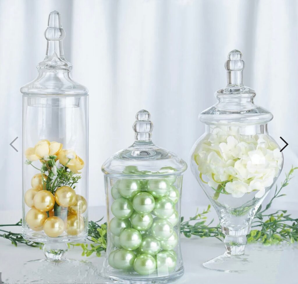 Clear glass apothecary jars in varying heights