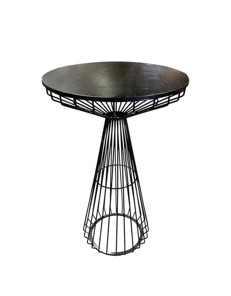The Black Axel Cocktail Table is a striking blend of modern sophistication and industrial design, making it an ideal addition to elegant lounges, upscale cocktail hours, and contemporary event spaces. With its 28-inch round tabletop and hourglass-inspired wireframe base, this table is both visually captivating and highly functional.