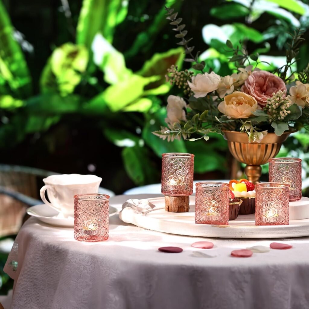 Add a soft, romantic glow to your reception tables with our Blush Pink Glass Votives. Featuring a delicate ribbed texture, these votive holders cast a warm, rosy ambiance, making them the perfect finishing touch for bohemian, garden-themed, or classic romantic weddings. Pair with our white tea lights for a subtle look, or add LED candles for effortless, all-night ambiance.